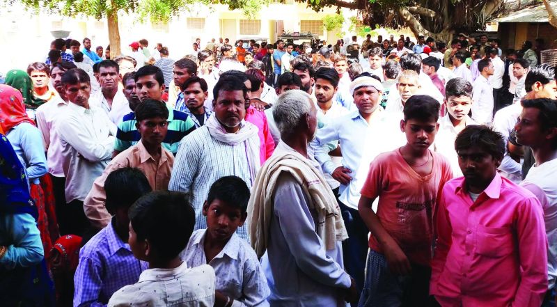 दुर्घटना के बाद वजीरपुर के अस्पताल के बाहर जमा भीड़।