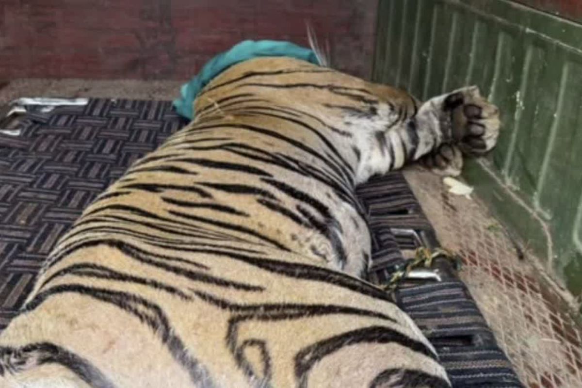 वन विभाग के पिंजरे में बाघिन, पत्रिका फोटो