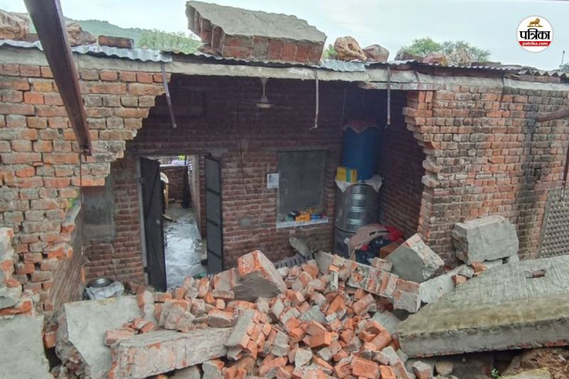 बारिश के चलते गिरा पक्का मकान। फोटो: पत्रिका