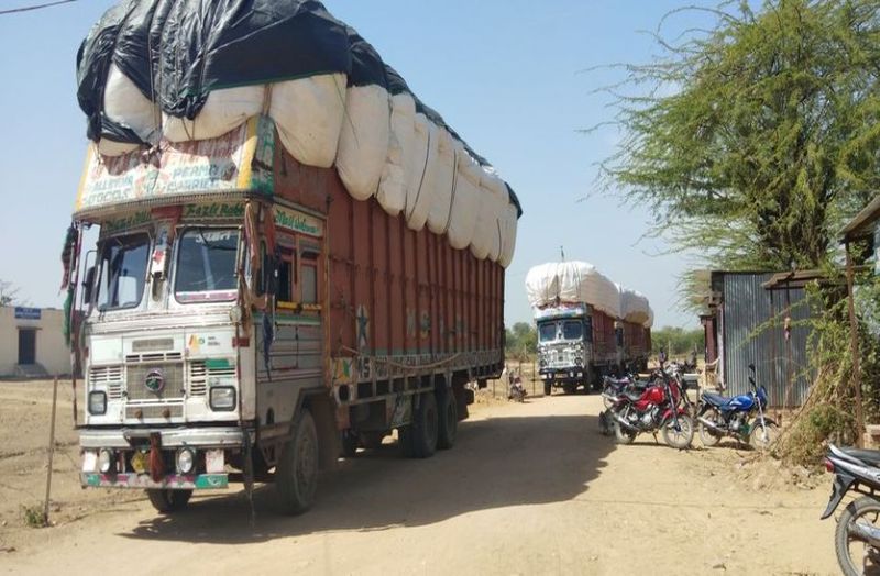 मलारना डूंगर थाने के बाहर खड़े जब्त तूड़ी भरे ट्रक।