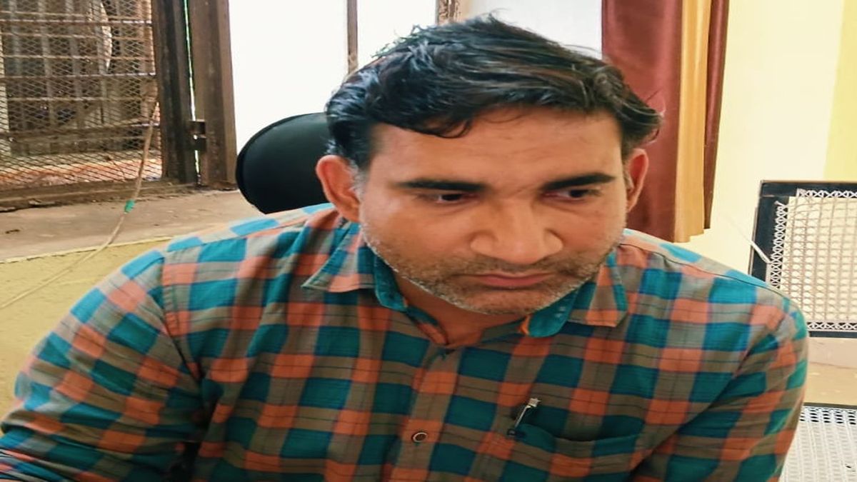सवाईमाधोपुर.एसीबी की गिरफ्त में आरोपी हरिओम गोयल।