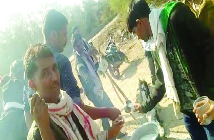 सवाईमाधोपुर कुशालीपुरा में जाम स्थल पर गरम होता दूध।