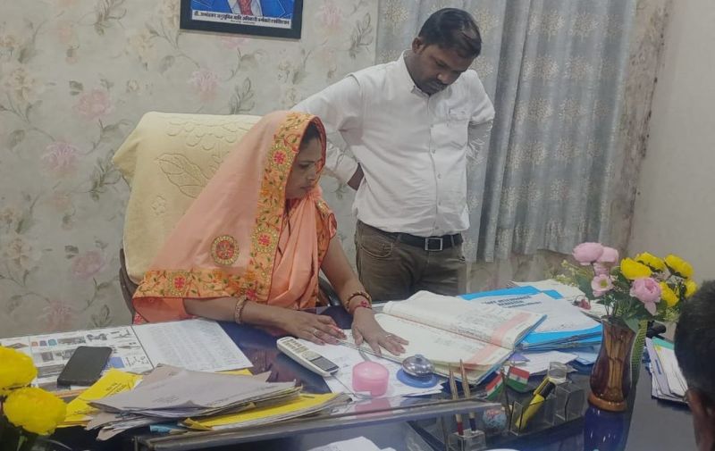 सवाईमाधोपुर. नगरपरिषद में रजिस्टर में उपस्थिति देखती सभापति।