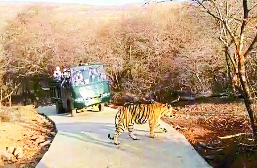 सवाईमाधोपुर. होली का त्योहार रणथंभौर में भ्रमण पर आने वाले पर्यटकों के लिए भी खुशियों के रंग लेकर आया। शुक्रवार को सुबह की पारी में भ्रमण पर गए पर्यटकों को गणेश मार्ग पर ही बाघिन एरोहेडेड के दीदार हुए। सुबह की पारी में भ्रमण के दौरान बाघिन सिंहद्वार के पास सडक़ पर चहल-कदमी करती नजर आई। बााघिन का स्वच्छंद विचरण देखकर पर्यटकों का दिल गदगद हो गया। इसके अलावा रणथंभौर में बाहरी जोनों में बाघों की साइटिंग का सिलसिला शुक्रवार को भी जारी रहा। शुक्रवार को रणथंभौर के जोन नंबर 6 में पर्यटकों को बाघ के दीदार हुए।