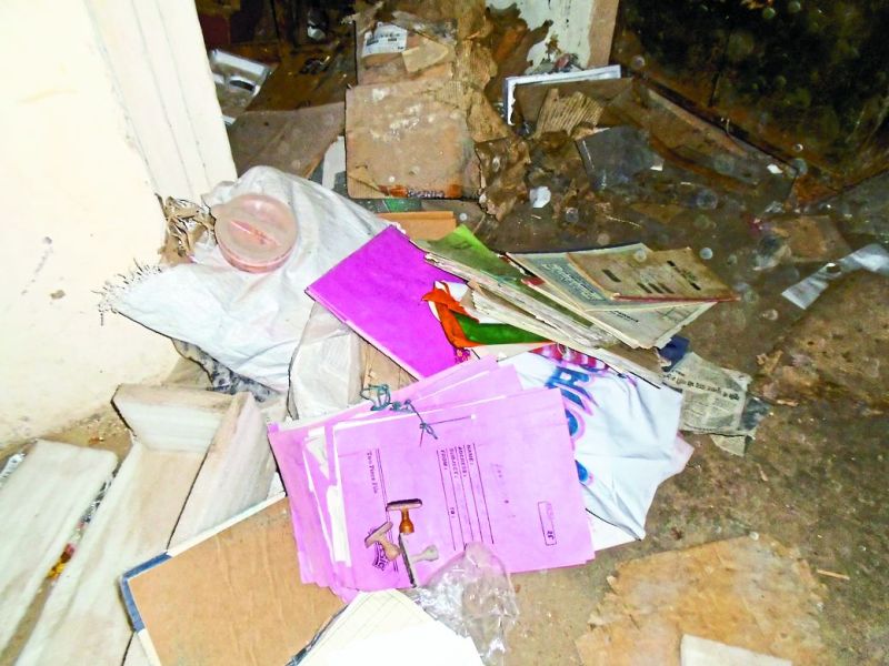 बालिका विद्यालय के पुराने भवन में बिखरी पड़ी रिकार्ड की फाइलें।