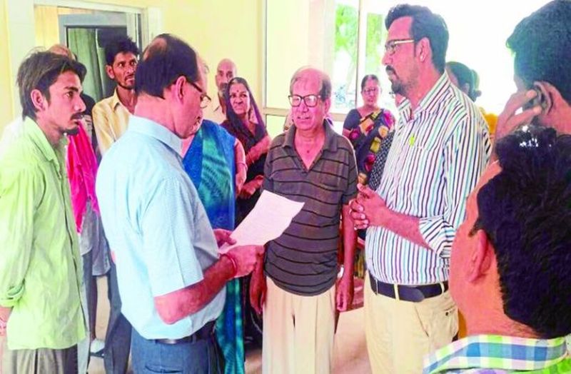 सवाईमाधोपुर. कलक्ट्रेट में जिला कलक्टर को ज्ञापन सौंपते लोग।