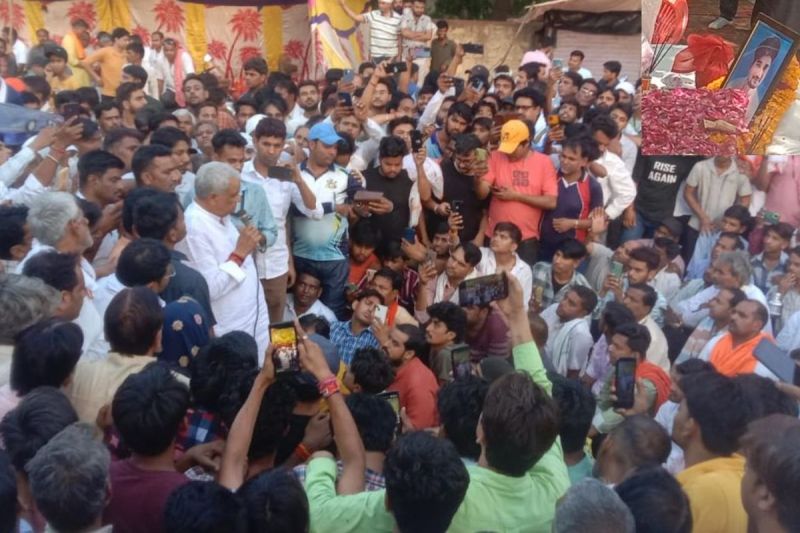 युवक अंकित मीणा की निर्मम हत्या के बाद सोमवार को कलेक्ट्रेट में तीए की बैठक हुई। महिला और पुरुषों ने श्रंद्धाजलि अर्पित की। तीन दिन से परिजन और हिंदूवादी संघठन और सर्व समाज के लोग धरने पर बैठे हैं। डॉ. किरोड़ीलाल मीणा के आश्वासन के बाद भी परिजन धरने से नहीं हटे।