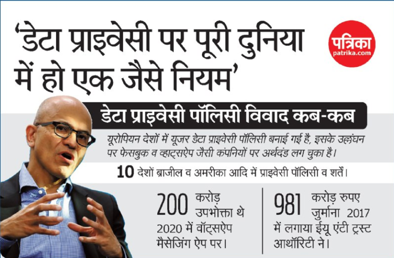 डेटा प्राइवेसी पर पूरी दुनिया में हो एक जैसे नियम- सत्य नडेला