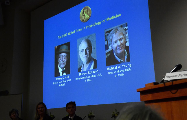 लंदन। तीन अमरीकी वैज्ञानिकों को फिजियोलोजी या चिकित्सा के क्षेत्र में 2017 का नोबेल पुरस्कार दिया गया है। इन लोगों को जैवचक्रीय आवर्तन बाइलोजिकल रिद्म) पर नियंत्रण के लिए अणु तंत्र की खोज के संबध में यह पुरस्कार दिया गया है। पुरस्कार समिति ने सोमवार को एक बयान में यह जानकारी दी। वैज्ञानिक जेफ्री सी. हॉल, माइकल रोसबाश और माइकल वी. यंग को मानव जैव घड़ी (ह्यूमन बॉयलोजिकल क्लॉक) और इसके आंतरिक कार्य पर प्रकाश डालने के लिए यह पुरस्कार दिया गया।