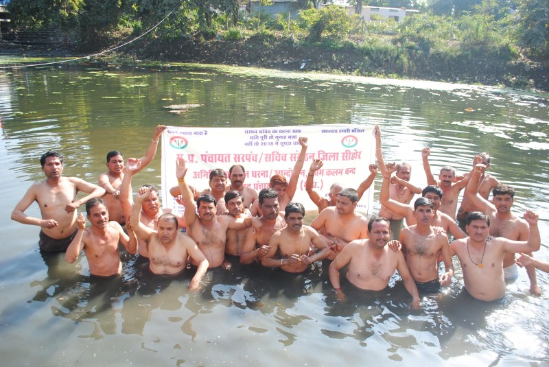 सचिवों ने पंचायत राज्य बचाने प्रमुख सचिव राधेश्याम जुलानिया को हटाने जमकर नारेबाजी की। सचिव बोले 10 जनवरी को भोपाल में पंचायत राज महारैली आयोजित कर आक्रोश के मटके फोड़े जाएंगे। इधर सरपंच संघ ने कहा कि सरपंच हड़ताल में शामिल नहीं हैं। सचिव संघ द्वारा सरपंच संघ का गलत तरीके से नाम का उपयोग कर रहा है। सरंपच संघ द्वारा इसकी निंदा की जा रही है। शहर के जनपद कार्यालय के समक्ष अनेक सरपंच और सचिवों के तत्वावधान में मांगों को लेकर आंदोलन तेज होता जा रहा है।शुक्रवार को सरपंच-सचिव संगठन ने जोरदार नारेबाजी करते हुए धरना-प्रदर्शन का आयोजन किया गया। इसके साथ ही सीवन नदी पुरुष घाट पर पहुंचकर पानी में उतरकर जल सत्याग्रह किया।जिला सचिव संगठन के अध्यक्ष लखन ठाकुर और ब्लाक अध्यक्ष राजू नामदेव ने बताया कि सचिव अपनी आठ सूत्रीय मांगों को लेकर पिछले कई दिनों से जिले में आंदोलनरत हैं। इनके हड़ताल पर जाने के कारण ग्रामीण क्षेत्रों में भारत के स्वच्छता अभियान सहित अन्य विकास कार्य ठप पड़े हुए है। आठ सूत्रीय मांगों को लेकर अनिश्चितकालीन हड़ताल पर चल रहे पंचायत सचिवों की हड़ताल से शौचालय निर्माण आवास योजना का सर्वे, मस्टर रोल सहित आधा दर्जन से अधिक का काम प्रभावित हो रहे हैं। उन्होंने कहा कि जब तक मांगें पूरी नहीं होगी कलम कार्यालय बंद आंदोलन जारी रहेगा।इसके साथ ही 10 जनवरी को भोपाल में पंचायत राज महारैली आयोजित आक्रोश के मटके फोड़े जाएंगे। धरना आंदोलन में शुक्रवार को अनेक सरपंच और सचिव आंदोलन में शामिल हुए।