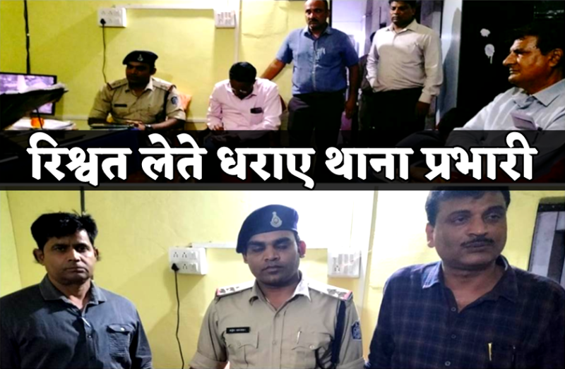 लोकायुक्त की बड़ी कार्रवाई, 25 हजार रिश्वत लेते हुए थाना प्रभारी और नगर सैनिक पकड़ाया