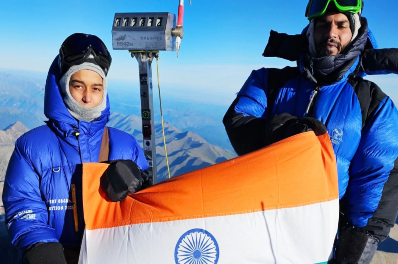 सबसे कम उम्र में माउंट एल्ब्रुस फतेह करने वाली मध्य प्रदेश की प्रीति ने भाई चेतन के साथ फहराया तिरंगा।