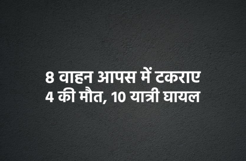 बड़वानी। मध्यप्रदेश और महाराष्ट्र की बार्डर पर बुधवार देर रात भीषण हादसे में चार लोगों की मौत हो गई। जबकि कुछ यात्री घायल भी हुए हैं। हादसा आगरा-मुंबई हाईवे पर 8 वाहन आपस में टकराने से हुआ। फिलहाल पुलिस मृतकों की शिनाख्त करने में जुटी है। इस हादसे पर मध्यप्रदेश के मुख्यमंत्री शिवराज सिंह चौहान ने दुख व्यक्त किया है।