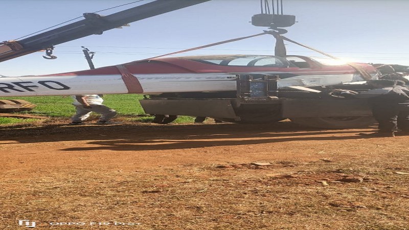 निजी कंपनी के अधिकारियों ने आमगांव खेत में गिरे दुर्घटनाग्रस्त विमान को क्रेन की सहायता से ट्राली पर लदवाया। इसके बाद विमान को ले जाया गया।