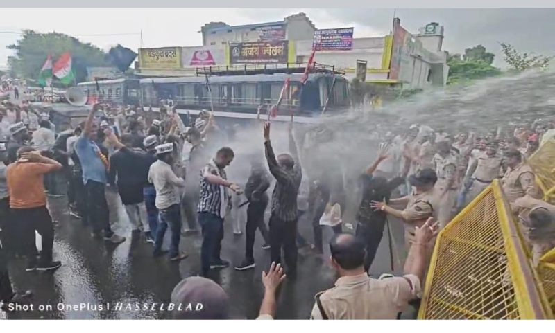 कलेक्ट्रेट गेट पर कांग्रेसियों पर पानी की बौछार