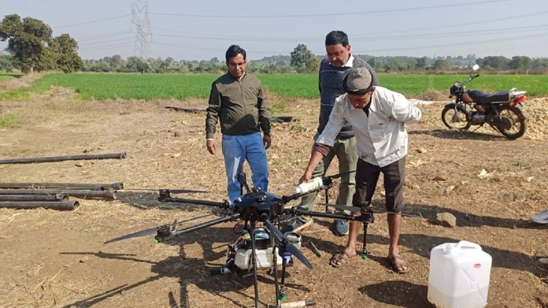 सिवनी. तकनीक के इस्तेमाल से अब खेती भी आसान और कम खर्चीली हो रही है। फसलों के बेहतर उत्पादन, कीटों से सुरक्षा में अब किसान ड्रोन तकनीक की मदद ले रहे हैं, जिससे यूरिया-नैनो डीएपी का छिडक़ाव कर रहे हैं। इसके लिए किसानों को प्रोत्साहित करने कृषि विज्ञान केन्द्र सिवनी के वरिष्ठ वैज्ञानिक एवं प्रमुख डॉ. शेखर सिंह बघेल की उपस्थिति में सिवनी विकासखंड के कुकलाह गांव में किसानों के खेत पर ड्रोन की तकनीक से गेहंू एवं मक्के की फसल पर नैनो यूरिया और नैनो डीएपी के छिडक़ाव का तकनीकी प्रदर्शन किया गया।