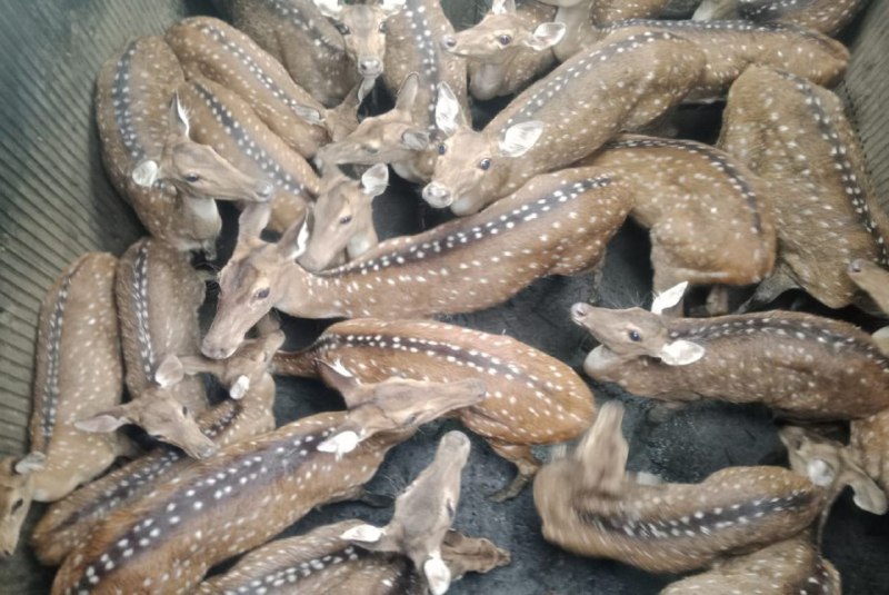 प्राचीन बोमा तकनीक से पकड़े चीतल-