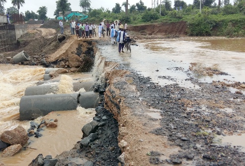 जिला मुख्यालय से लगभग 30 किलोमीटर दूर कटंगी रोड स्थित ग्राम गोकलपुर में नए पुल का निर्माण कार्य चल रहा है। गांव गोकलपुर और गंगेरूआ के बीच बन रहे इस नए पुल के बाजू से पुलिया डालकर यहां से आवागमन के लिए बनाया गया वैकल्पिक मार्ग बीती रात्रि हुई झमाझम बारिश के कारण सड़क के बीच का काफी बड़ा हिस्सा बह गया। साथ ही सड़क के एक किनारे की पुलिया और बाजू में निर्माणाधीन पुल का काफी सामान भी बह गया।