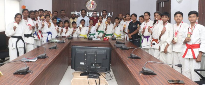 कलेक्टर ने अंतर्रास्ट्रीय कराते प्रतियोगिता में शहडोल की विजेता टीम से की मुलाकात, दी शुभकामनाएं
