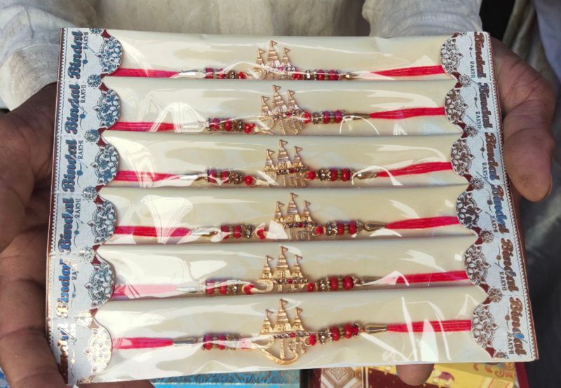 राखी व्यापारी रत्नेश गुप्ता ने बताया कि वह 1991 से राखी का व्यवसाय कर रहे हैं। इस बार राखियों को अहमदाबाद व कोलकाता से मंगाया गया है। अयोध्या मंदिर व रामदरबार की आकृति वाली राखियों को खूब पसंद किया जा रहा है।