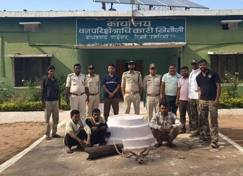 शहडोल. बांधवगढ़ टाइगर रिजर्व के वन परिक्षेत्र खितौली अंतर्गत वन्यजीव चीतल का शिकार किए जाने का मामला प्रकाश में आया है। मामले में बांधवगढ़ टाइगर रिजर्व की टीम ने तीन आरोपियों को गिरफ्तार कर न्यायालय में पेंश किया है। वहीं तीन अन्य आरोपी $फरार बताए जा रहे हैं। जानकारी के अनुसार वन परिक्षेत्र खितौली के डोभा बीट अंतर्गत आरएफ 380 छिपियाडांड में क्लच वायर से फदा लगाकर चीतल का शिकार किया गया था। शिकार की भनक लगते ही सक्रिय हुए पार्क अमले ने गोरेलाल बैगा, राममिलन बैगा और दिनेश बैगा तीनों निवासी गढ़पुरी को गिरफ्तार कर लिया है। बताया जा रहा है कि आरोपी चीतल का शिकार करने के बाद जंगल में ही उसे काटने के बाद घर लेकर आए थे। आरोपियों की निशानदेही पर रक्तरंजित ठूंठ, चीतल का सिर और क्लच वायर का फंदा जब्त कर लिया गया है। आरोपियों के विरुद्ध प्रकरण दर्ज कर न्यायालय उमरिया में प्रस्तुत किया गया। न्यायालय ने आरोपियों को न्यायिक हिरासत में भेज दिया। चीतल के तीन अन्य शिकारी अभी भी फरार बताए जा रहे हैं, जिनकी तलाश की जा रही है। कार्रवाई में परिक्षेत्र अधिकारी खितौली एवं पतौर, परिक्षेत्र सहायक गढ़पुरी, बीटगार्ड डोभा, रंछा, गढ़पुरी, उमरिया बकेली सहित अन्य वनकर्मी का विशेष सहयोग रहा।