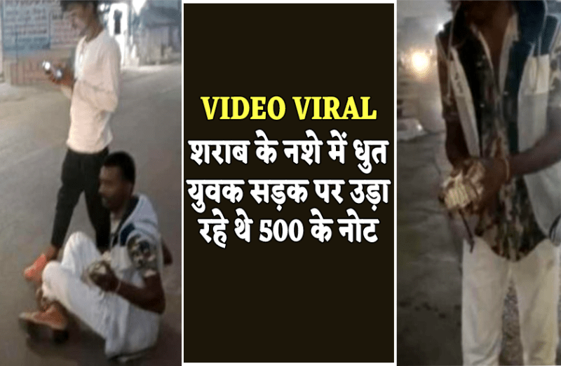 शराब के नशे में धुत युवकों का हाईवोल्टेज ड्रामा, सड़क पर उड़ा रहा था 500 के नोट, वीडियो वायरल