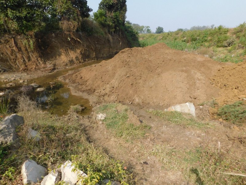टांकी नाला मुडऩा नदी में मिलता है, दोनों ओर से मशीन से काटकर खोदकर मिट्टी डाल रहे हैं। बताया जा रहा है कि टांकी बांध का पानी इस नाला से हमेशा बहता रहता है जो कि आगे जाकर मुडऩा नदी में मिलता है। इससे कई किसानों के खेत भी सिंचित होते थे। अब बीच में ही इसकी जलधार को बोरी बंधान कर रोक दिया गया है। वहीं इसके दूसरे छोर से मशीन से मिट्टी निकालकर निजी भूमि को समतल किया जा रहा है। जिस पर रोक लगाने अभी तक कोई ठोस कदम नहीं उठाए जा रहे हैं। जबकि नाले के दूसरे छोर से बड़ी तादाद में मिट्टी निकाल उपयोग में लाई जा चुकी है।