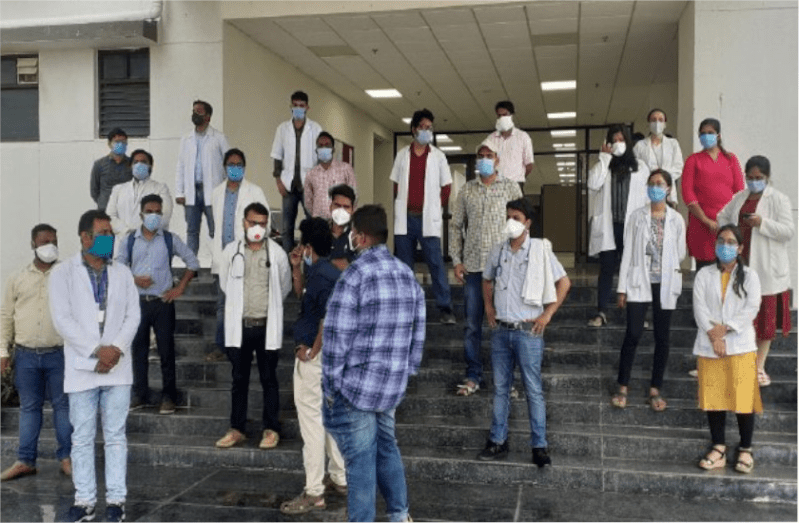 उसके बाद मरीज को आकस्मिक विभाग में लाया गया और बिना पर्चे के मरीज को भर्ती करने का दबाव बनाया गया। मरीज की दिक्कत पूछे जाने पर किसी ने नहीं बताई और बोला गया कि डॉक्टर हो तुम जानों। इस पर वार्ड में मरीज को भर्ती कर पीआर, बीपी, आरबीएस, ईसीजी किया तो मरीज को आईएसडी और हाईब्लड शुगर निकला। इस पर तत्काल मेडिसिन स्पेशलिस्ट को ऑनकाल बुलाया गया। इलाज के दौरान मरीज की पुन: हालत बिगड़ गई। इस पर मरीज को तत्काल ऑक्सीजन लगाया गया और लगभग 15 मिनट तक सीपीआर दिया गया। पूरी कोशिशों के बावजूद मरीज को नहीं बचाया जा सका।