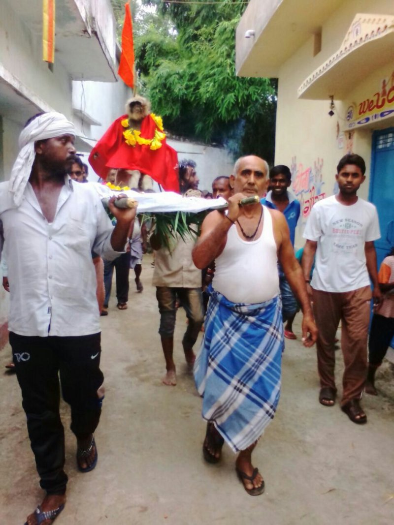 शहडोल । मध्यप्रदेश की सबसे बड़ी ग्राम पंचायत के रूप में अपनी पहचान बनाने वाली बकहो ग्राम पंचायत में बंदर की कुत्तो के काटने से मौत के बाद ग्रामीणों ने बाजे गाजे के साथ अर्थी निकाल नगर भ्रमण करा भू समाधी दे एक अनूठी मिशाल पेश की है शहडोल जिले के जनपद पंचायत अंतर्गत ग्राम पंचायत बकहो वार्ड नं 6 कुछ बंदर रहते थे गत सोमवार को एक बंदर को कुछ कुत्तों ने नोच कर जख्मी कर दिया था। तबसे वह वही घायल अवस्था में पड़ा था। आसपास के लोग उसका इलाज भी किया, जिंदगी मौत की इस लड़ाई के बाद मंगलवार को उसने दम तोड़ दिया।
