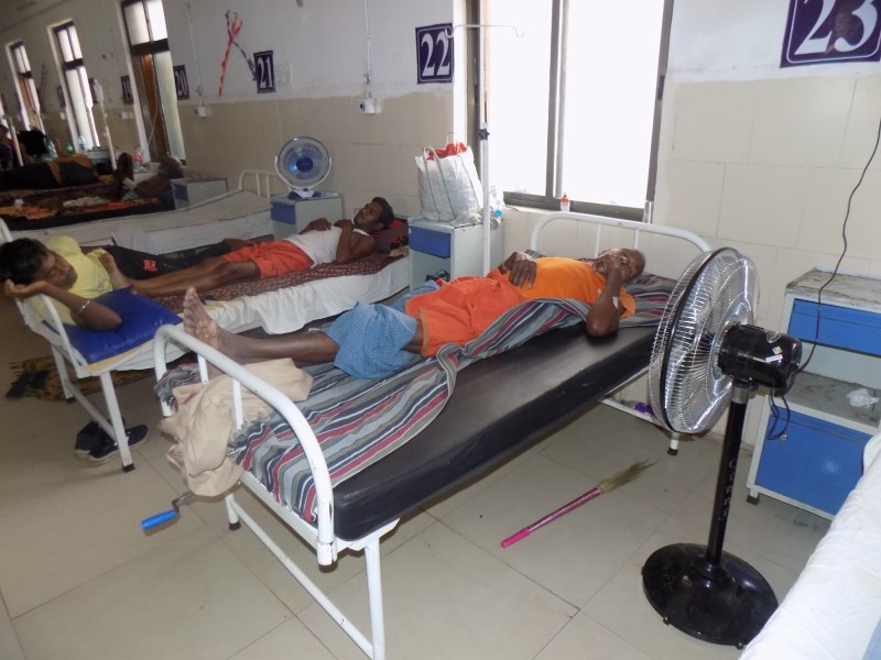 अस्पताल के मेल मेडिकल वार्ड में अधिकांश मरीज उल्टी, दस्त, बुखार व सिरदर्द के भर्ती हैं। वार्ड में कुछ पंखों की स्पीड काफी कम है तो कुछ पंखे बंद पड़े हुए हैं। गर्मी से राहत पाने के लिए कूलर तो लगाए गए हैं। लेकिन बिना पानी के आग उगल रहे हैं। वार्ड में एक्झास्ट नहीं लगाया गया है। खिड़कियां बंद होने से तापमान दो गुना बढ़ गया है। जिसके कारण उमस से मरीज परेशान होते देखे गए।