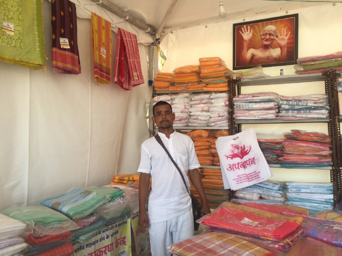 अमरकंटक के सर्वोदय तीर्थ क्षेत्र में आयोजित पंचकल्याणक महोत्सव में स्टॉल लगाने वाले जबलपुर निवासी संजीव जैन बताते हैं कि जहां-जहां आचार्यश्री के कार्यक्रम होते हैं वह वहां पर स्टॉल लगाते हैं। उनके पास हथकरघा से बने अभिषेक पूजन वस्त्र, धोती-दुपट्टा, विधान की साडिय़ां, बनारसी साड़ी, महेश्वरी साड़ी सहित अन्य वस्त्र जो पूजा में लगते हैं वह उपलब्ध है। इनके बहुत ज्यादा दाम भी नहीं होते हैं। वह सिर्फ कारीगरों की मजदूरी और धागा की कीमत ही लेते हैं।