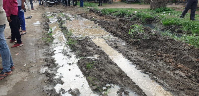खराब सड़क की मरम्त को लेकर प्रदर्शनकारियों ने कीचड़ में लगाया धान का रोपा