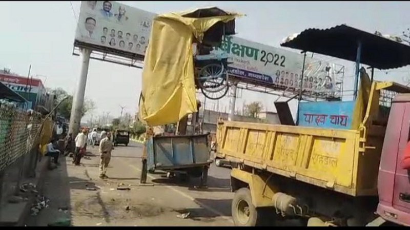शहडोल. नगर की सड़क किनारे ठेले-टपरे लगाकर अपना व अपने परिवार का भरण पोषण करने वालों को नगर पालिका की टीम द्वारा हटाने की कार्रवाई की गई। इस दौरान नगर पालिका टीम द्वारा सड़क किनारे खड़े सभी ठेले-टपरों को जेसीबी के माध्यम से उठाकर ले जाया गया। इस दौरान नगर पालिका की टीम द्वारा नगर के जिला चिकित्सालय के सामने से और गांधी चौक के आगे एमएलबी स्कूल के सामने जमे ठेलों को हटाने की कार्रवाई की गई। उल्लेखनीय है कि गत दिवस सड़क सुरक्षा समिति की बैठक में यह निर्णय लिया गया था कि अस्पताल के सामने व गंज रोड से अतिक्रमण हटाया जाएगा। जिसके बाद गुरुवार की दोपहर लाव लश्कर के साथ जिला चिकित्सालय और एमएलबी स्कूल के सामने पहुंची नगर पालिका की टीम द्वारा सड़क किनारे लगे आधा दर्जन से अधिक ठेलों को जेसीबी के माध्यम से हटाने की कार्रवाई की गई। कार्रवाई के दौरान धमेन्द्र सोनी, पराग दुबे, संजय गुप्ता, मनीष वर्मा सहित नगर पालिका की टीम शामिल रही।