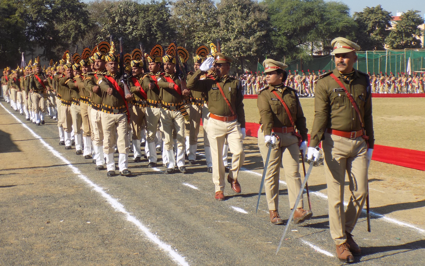 शहडोल. 76वं गणतंत्र दिवस समारोह रविवार को जिले भर में बड़े उत्साह के साथ मनाया गया। सार्वजनिक स्थलों के साथ ही सभी शासकीय भवनों, कार्यालयों, विद्यालयों, महाविद्यालयों में अतिथियों ने ध्वज वंदन किया। गणतंत्र दिवस का मुख्य समारोह महात्मा गॉधी स्टेडियम में आयोजित हुआ। मुख्य अतिथि कलेक्टर डॉ. केदार सिंह ने झंडा वंदन कर परेड की सलामी ली। उन्होंने पुलिस अधीक्षक श्रीराम जी श्रीवास्तव के साथ परेड का निरीक्षण किया तथा गगन में रंग बिरंगे गुब्बारे मुक्त किए। गणतंत्र दिवस समारोह में पुलिस बल की टुकडिय़ों ने हर्ष फायर किया। राष्ट्रगान की धुन के साथ तिरंगें झण्डे को सलामी देने आकर्षक मार्चपास्ट प्रस्तुत किया। मार्चपास्ट परेड कमॉडर सूबेदार ब्रजलाल रोकड़े, परेड कमाण्डर (टूआईसी) सूबेदार राजमती परस्ते के नेतृत्व में किया गया। मार्च पास्ट में 29वीं वाहिनी बी कम्पनी विसबल कैम्प शहडोल, उप निरीक्षक सूरज सिंह, जिला बल शहडोल (पुरुष) उप निरीक्षक आनंद झारिया, जिला बल शहडोल (महिला) उप निरीक्षक अर्चना धुर्वे, होम गार्ड कोमल सिंह, दक्षिण वन मंडल महेंद्र सिंह परस्ते, एनसीसी बालक सीनियर में जागेश्वर धुर्वे, एनसीसी बालिका निक्की सिंह, एनसीसी बालक जूनियर प्रियांशु जैन, स्काउट सीनियर बालक ऋत्विक कुमार मिश्रा, स्काउड गाइड बालिका मीनाक्षी सिंह, स्काउट जूनियर बालक अनुराग कुशवाहा, शौर्य दल शहीन खान पुलिस बैंड दल से मो. कमरूद्दीन के नेतृत्व में आकर्षक मार्च पास्ट किया गया। कलेक्टर डॉ. केदार सिंह ने परेड कमाण्डरों से परिचय प्राप्त किया। उन्होने मुख्यमंत्री डॉ मोहन यादव के संदेश का वाचन किया। गणतंत्र दिवस के अवसर पर आयोजित मुख्य समारोह में स्कूली छात्र-छात्राओं ने सांस्कृतिक कार्यक्रमों की मन मोहक प्रस्तुतियां दी। गणतंत्र दिवस समारोह में जिला पंचायत अध्यक्ष प्रभा मिश्रा, विधायक जयसिंहनगर मनीषा सिंह, आईजी अनुराग शर्मा, डीआईजी सविता सुहाने, पुलिस अधीक्षक श्रीराम जी श्रीवास्तव, नगर पालिका अध्यक्ष घनश्याम जायसवाल, नगरपालिका उपाध्यक्ष प्रवीण शर्मा, समाजसेवी अमिता चपरा, अपर कलेक्टर सरोधन सिंह, सहित लोकतंत्र सेनानी, पार्षद एवं विभिन्न विभागो के अधिकारी एवं कर्मचारी तथा गणमान्य नागरिक उपस्थित रहे। कार्यक्रम का संचालन जन अभियान परिषद के जिला समन्वयक विवेक पांडेय एवं अरूणिमा सिंह ने किया।