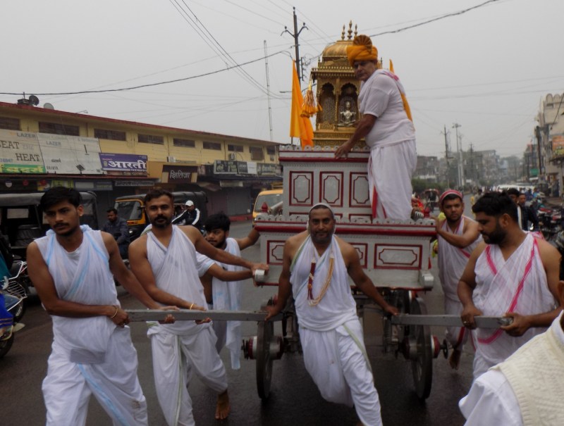 मुनिश्री निरंजर सागर महाराज के सानिध्य में रिमझिम बारिश के बीच निकला विमान उत्सव