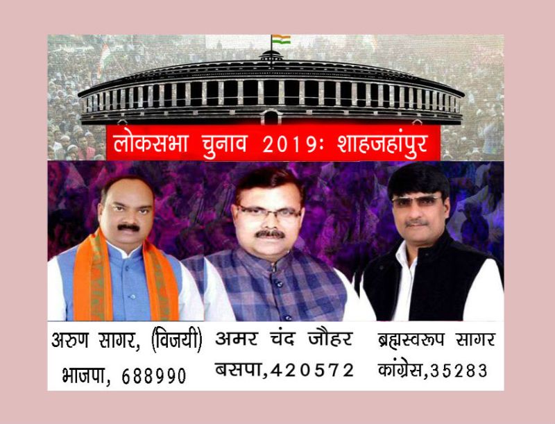 शाहजहांपुर। शाहजहांपुर (सुरक्षित) लोकसभा सीट पर भारतीय जनता पार्टी के अरुण सागर ने बड़ी जीत दर्ज की है, वहीं गठबंधन प्रत्याशी अमर चंद्र जौहर दूसरे नंबर पर रहे। शुरुआती परिणाम से साफ हो गया था कि यहां भाजपा और बसपा में मुकाबला है। शाहजहांपुर सीट पर एग्जिट पोल के विपरीत चुनाव परिणाम आया। इस लोकसभा सीट पर उत्तर प्रदेश सरकार के मंत्री सुरेश खन्ना की प्रतिष्ठा दांव पर लगी हुई थी।