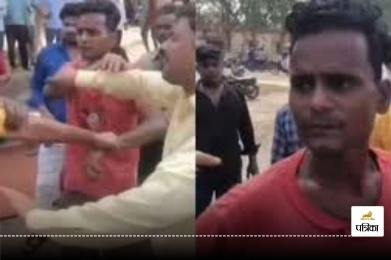मुस्लिम युवक को पीटकर लोगों ने पुलिस को सौंपा।