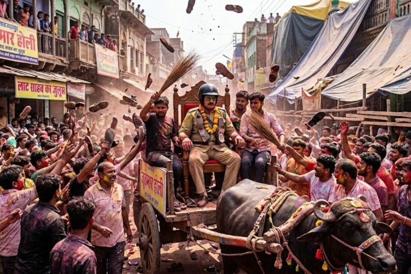 Holi 2026 : होली के हजार रंगों के बीच एक रंगीला ढंग यूपी के शाहजहांपुर की 300 साल पुरानी परंपरा का भी है। होली के रंग कहीं फूलों से खिलते हैं तो कहीं लट्ठमार होली की धूम होती है, लेकिन यहां के लोगों की होली और मस्ती का अंदाज सबसे जुदा है। यहां होली के दिन 'जूतेमार होली' खेली जाती है। इसमें एक शख्स को लॉट साहब बनाकर भैंसा गाड़ी पर घुमाया जाता है और पूरे रास्ते उन पर जूतों और झाड़ुओं की बौछार की जाती है। इस बार यह ऐतिहासिक जुलूस 4 मार्च को निकाला जाएगा।