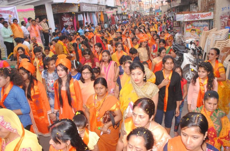 शोभायात्रा में बड़ी संख्या में शामिल समाज की महिलाएं व युवतियां