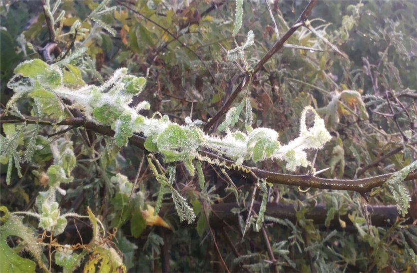 लगातार शीतलहर के कारण पूरे क्षेत्र में कड़ाके की सर्दी से जन-जीवन अस्त-व्यस्त हो गया है। शनिवार सुबह तो आलम यह रहा कि रात में न्यूनतम तापमान ४ डिग्री पहुंचने के कारण फसलों व पत्तियों पर बर्फ की परत बिछ गई। न्यूनतम तापमान ४ डिग्री सीजन में अब तक सबसे कम दर्ज किया गया है। इधर कड़ाके की सर्दी का असर दिनभर आसमान खुला रहने और तीखी धूप निकलने के बाद भी बरकरार रहा। हालांकि मौसम विभाग अब तापमान में धीरे-धीरे बढ़ोतरी की संभावना जता रहा है।