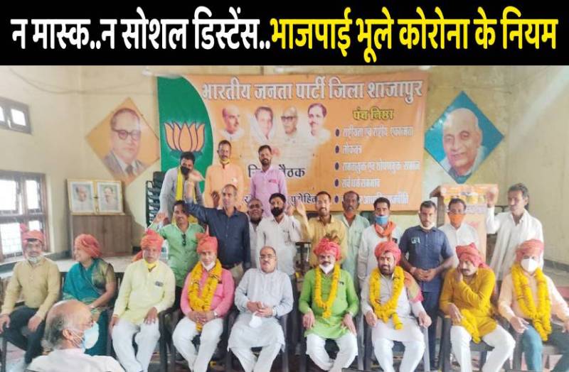 शाजापुर. कोरोना अभी खत्म नहीं हुआ है और कोरोना को हराने के लिए हम मास्क लगाना है और सोशल डिस्टेंसिंग के नियम का पालन करना है। इस बात पर प्रदेश सरकार और प्रशासनिक अमला काफी जोर दे रहा है। जनता से इसके पालन की अपील की जा रही है । सीएम शिवराज सिंह चौहान से लेकर सभी जनप्रतिनिधि जनता से मास्क लगाने की अपील कर रहे हैं लेकिन इसके बावजूद शाजापुर से जो तस्वीर सामने आई है वो हैरान कर देने वाली है। दरअसल यहां दूसरों का सोशल डिस्टेंसिंग और मास्क लगाने का पाठ पढ़ाने वाले जिम्मेदार ही खुद नियमों को भूल गए।