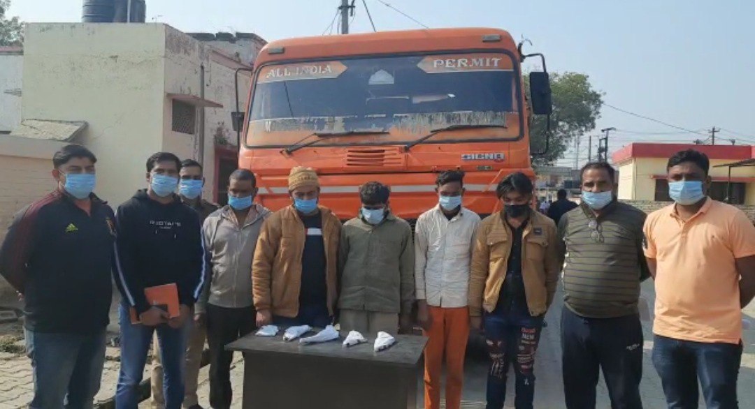पकड़े गए आराेपी और पीछे बरामद ट्रक