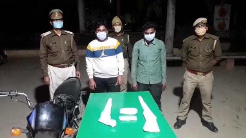 वहीं पर खेत में घात लगाए बैठे दो अन्य लोगों ने उसे दबोच लिया और तमंचे के बल पर आतंकित करके उसके पास से एक लाख रुपये, बाईक, टैबलेट, मोबाइल फोन लूटकर फरार हो गए। जिसकी सूचना पीड़ित ने पुलिस को दी। घटना का सम्बन्ध दो थाना क्षेत्रो से होने के चलते थानाभवन थाना प्रभारी और गढ़ी अब्दुल्ला चौकी टीम ने संयुक्त रूप से पुलिस टीम के साथ कार्यवाही करते हुए दो बदमाश साजिद उर्फ बेदू निवासी बुंटा, टोनी उर्फ विपिन निवासी खेड़ा गदाई को खेड़ा गदाई नहर के पुल से लूट में शामिल बाईक, दो तमंचे व 59 हजार पचास रुपये सहित गिरफ्तार कर लिया।