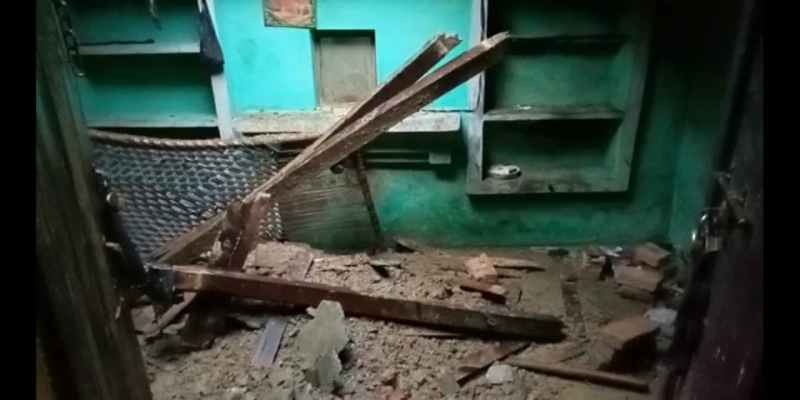 मकान के अंदर पड़ा मलबा