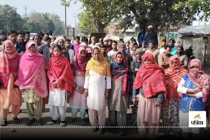 महिला की मौत के बाद अस्पताल के बाहर प्रदर्शन करते ग्रामीण