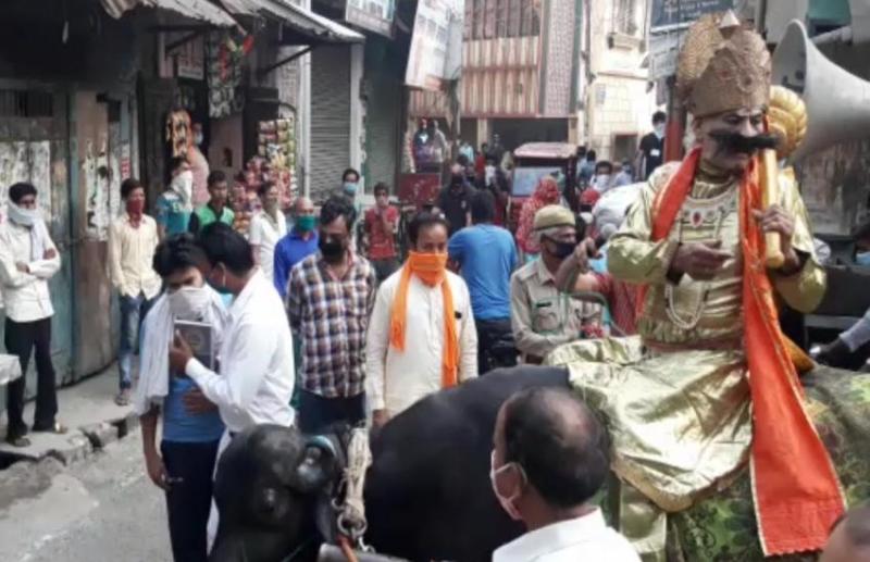 शामली। जनपद में रोटरी क्लब स्टार्स द्वारा करोना महामारी जागरूकता अभियान नाम से एक रैली का आयोजन किया गया। जिसमें मुख्य आकर्षण यमराज, चित्रगुप्त और कोरोना की झांकी रही। इस दौरान भैंसे पर बैठे साक्षात यमराज द्वारा जनता को जागरूक रहने, मास्क पहनने, एक दूसरे से एक मीटर की दूरी बनाकर रखने, समय समय पर हाथ धोने व घर पर ही रहने का संदेश दिया गया है। इस दौरान अपने घरों से भी