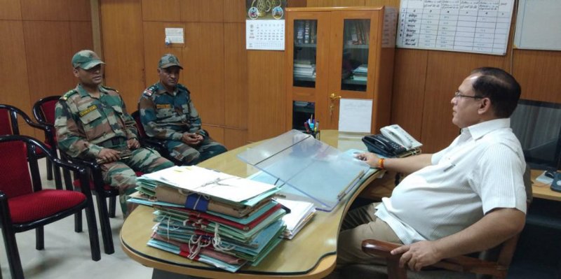 बाढ़ आपदा प्रबंधन को लेकर कलेक्टर से चर्चा करते आर्मी के अफसर।