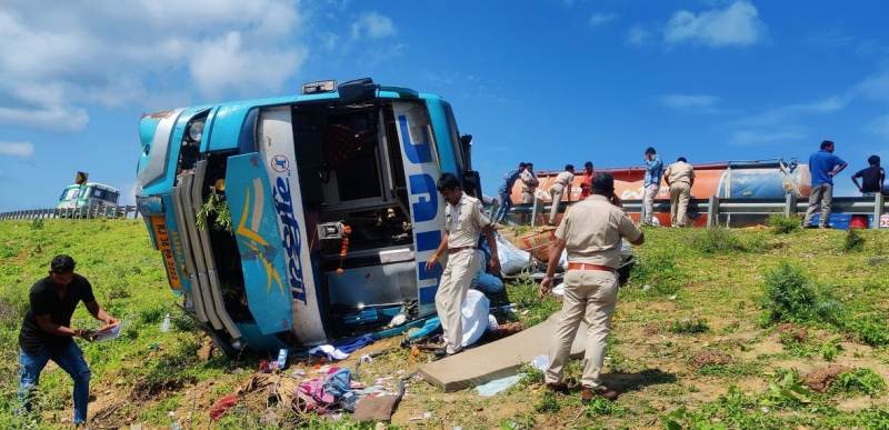 प्रत्यक्षदर्शियों ने बताया कि कोटा से आ रही निजी कम्पनी की स्टाफ बस में लगभग 15 जने सवार थे। उन्होंने बस को डिवाइडर पार कर पलटते देखा। उनकी बस महज 50 मीटर की दूरी पर थी। हादसे के बाद उन्होंने घायलों को बाहर निकाला।