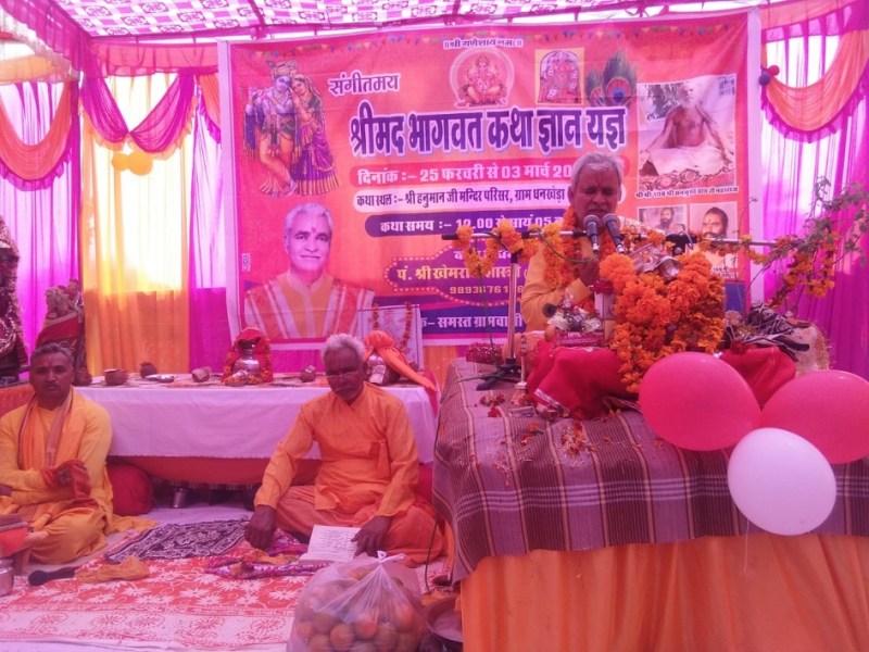 कथा वाचन करते कथा व्यास।