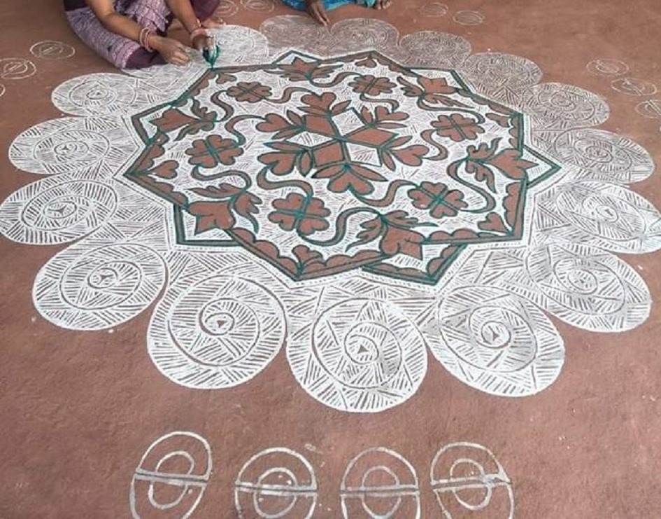महिलाओं द्वारा बनाया गया मांडणा।